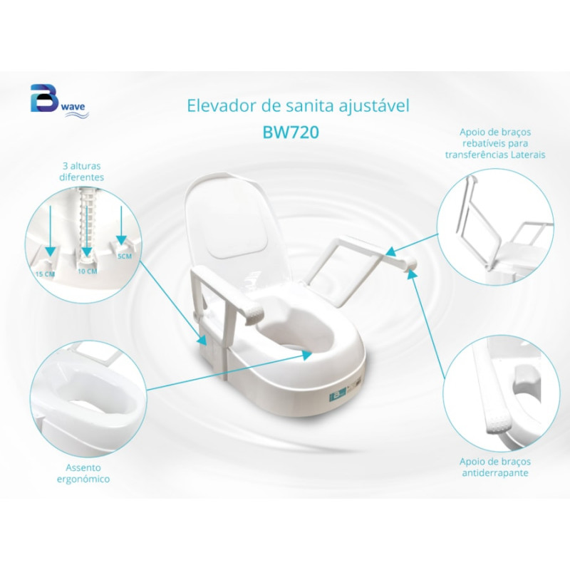 Ideal para prevenir dores e stress em pacientes ou idosos que veem a sua mobilidade consideravelmente reduzida. Devido às suas condições com problemas de quadril, joelhos, baixa mobilidade ou patologia, os utilizadores deste artigo devem permanecer sentados na sanita a uma altura mais elevada. Ao elevar a altura da sanita em 15 cm vai proporcionar mais autonomia e conforto aos utilizadores. Encaixa na maioria das sanitas ovais clássicas. Não encaixa em sanitários quadrados ou retangulares. A sua montagem é feita sem o uso de ferramentas. A sua fixação é simples, basta colocá-lo em contato com a parte frontal e apertar os 2 botões grandes.